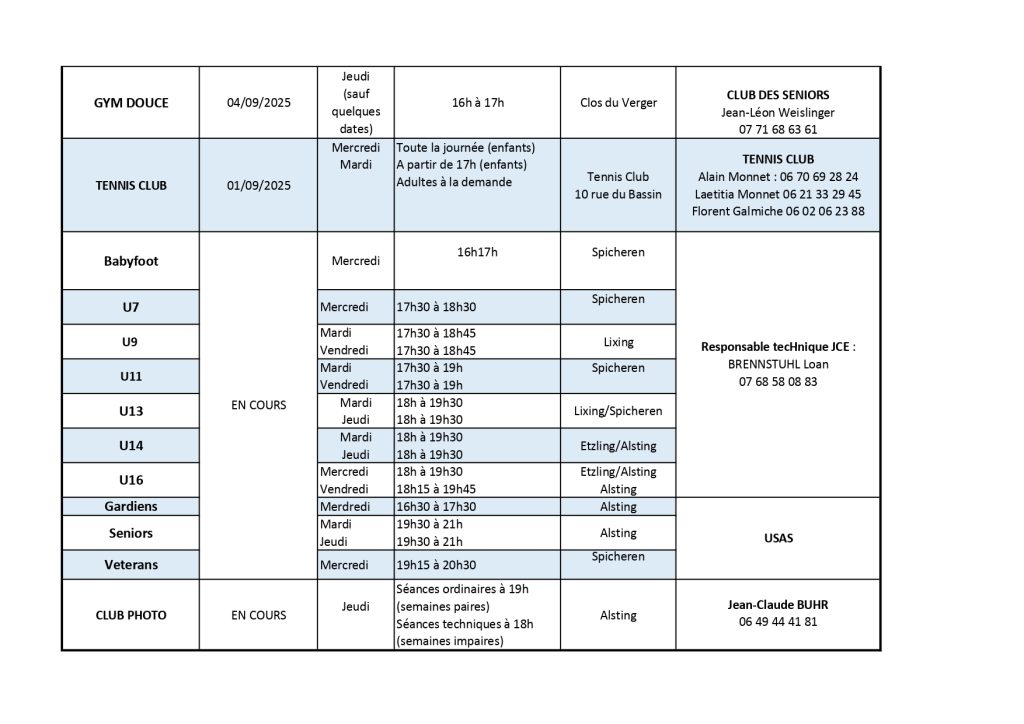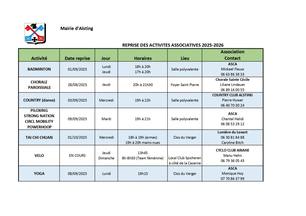 Liste des activités proposées pour la rentrée 2025/2026 :
